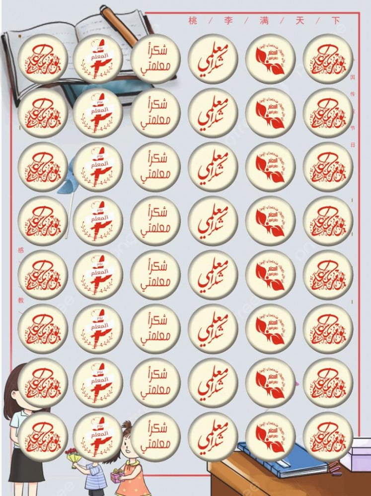 ورق ترانسفير مدور أحمر يوم المعلم شكرا معلمي